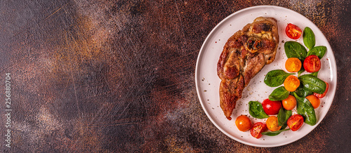 Roasted turkey steak with salad.