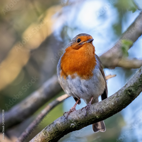 Robin looking alert in a tree on a spring day