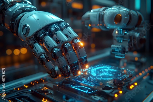 Robotic Arm Assembling Component in High-Tech Lab - Generative AI