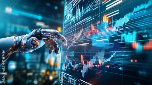 Robotic Hand Interacting with Digital Data.