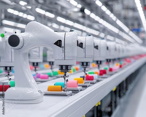 Robotic sewing arms crafting tailored pillowcases, hightech factory integration