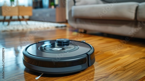 robotic vacuum cleaner on laminate wood floor smart cleaning technology