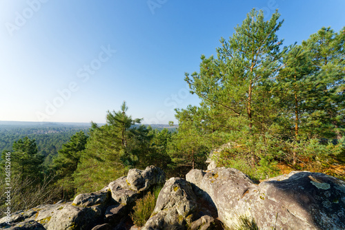 Rocher du Guetteur mount in the Trois Pignons Forest. Fontainebleau Massif