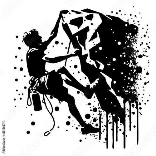 Rock climber Silhouette Grunge Splatter and Dripping Spray Effects