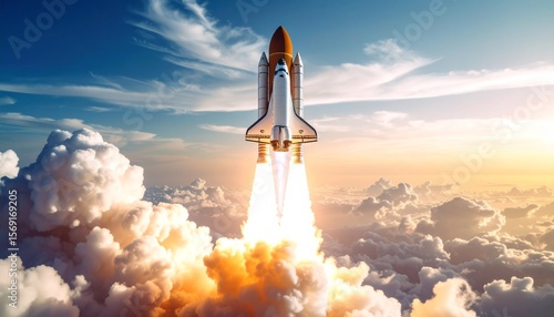 Rocket launch event space digital artwork cloudy sky aerial view innovation and exploration