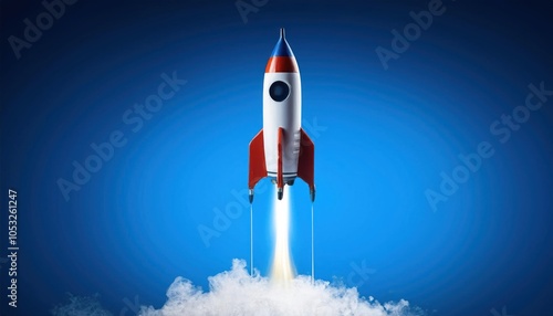 Rocket Launch on Dark Blue Background, Isolated Image for Startup and Space Themes