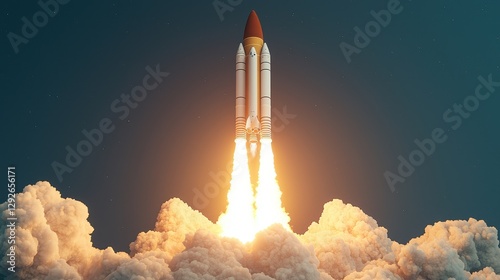 Rocket Launch with Bright Flames and Clouds Against a Dark Sky in a Stunning Scenic View