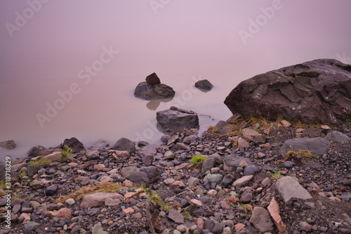 Rocks lying in the still waters of Iceland