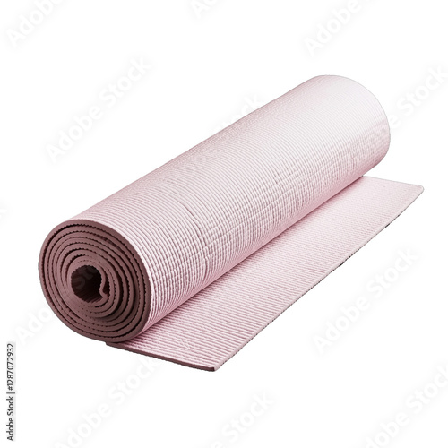 Rolled pink yoga mat on a transparent background for fitness enthusiasts