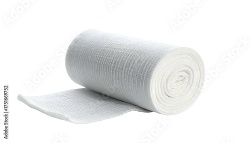 Rolled white medical bandage against a dark, plain background