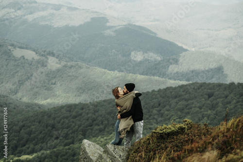 Romantic couple on mountain top