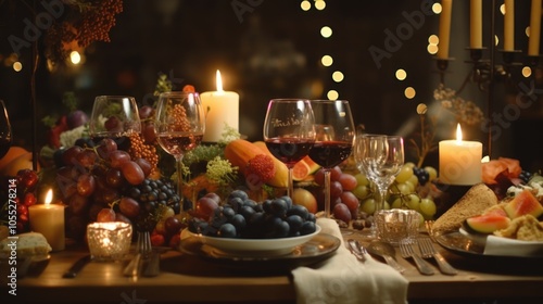 Romantic Dinner Table Setting with Candles and Fruit