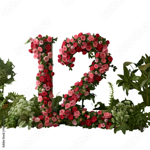 Romantic floral number twelve arrangement for anniversaries, weddings, or Valentine's Day celebrations with stunning red and pink roses