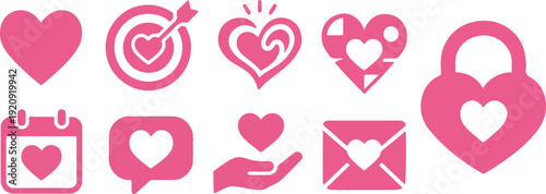 Romantic Heart Icons bundle Pack : Love & Affection vector element Collection.