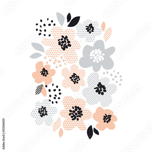 romantic pale color floral design element vector illustration. flower with geometric pattern for header, card, poster, print and web projects