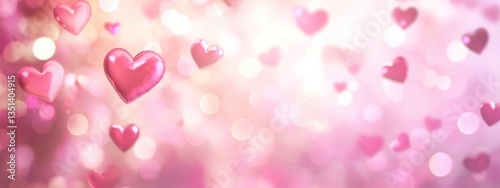Romantic Pink Hearts Floating in Soft Bokeh Background