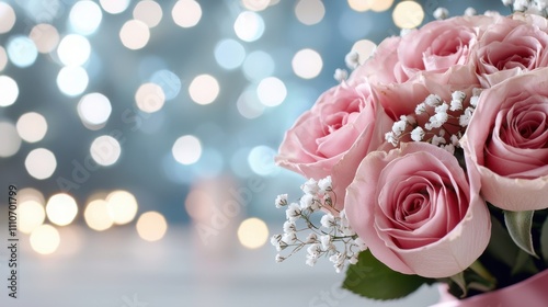 Romantic Pink Roses Bouquet, Bokeh Lights