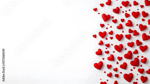 Romantic Red Hearts Scattered on White Background Valentine's Day