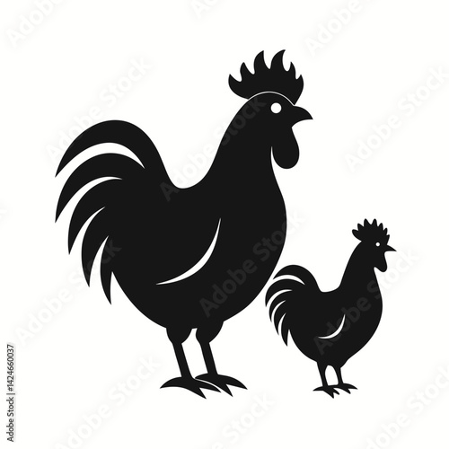 Rooster Hen Silhouette: Black & White Farm Animal Vector Illustration.