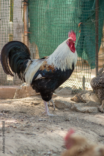 Rooster in freedom in a country house