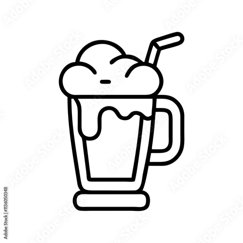 root beer float icon, ice cream day line art, ice cream icon - simple black line art icon of root beer float, symbolizing ice cream day celebrations. ice cream vector art.