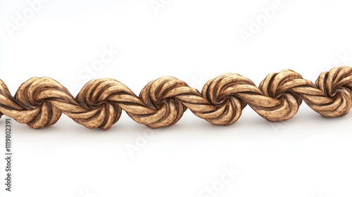 Rope border collection in 3D, featuring twists and loops, with a natural finish, isolated on white