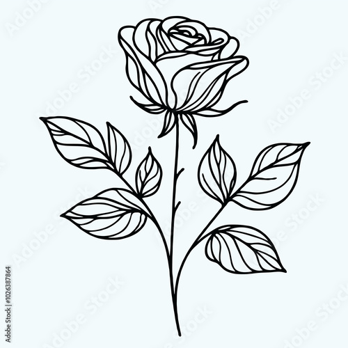 rose sketch, roses flower set of flowers vector illustration outline of a flower black and white line art, lineart, Beautiful hand drawn meadow flowers, design elements. Can be used for cards, invitat