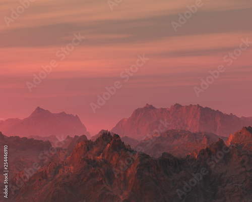 Rough mountain peaks at sunset.