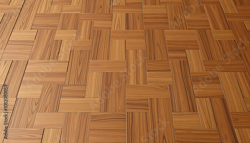 Rough parquet floor with a geometric pattern. Brown seamless wooden background. Wood texture, 8k unreal engine photorealism
