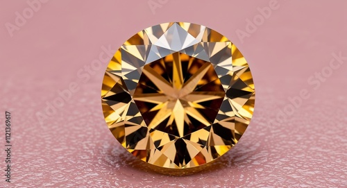 Round citrine golden yellow brilliance smooth radiance on a pale pink background
