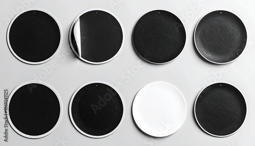 Round, dark plates, one peeling, on a light surface