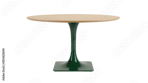 Round dining table with green pedestal base isolated PNG, modern furniture for kitchen and living room on transparent background