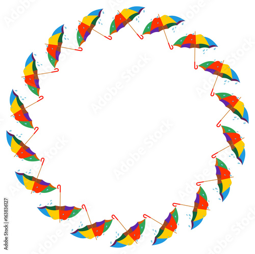 Round frame with fallen leaves and umbrella. Vector clip art.
