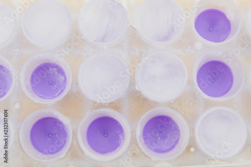 Round the ice in the ice tray purple color