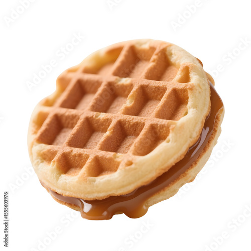 Round waffle sandwich with caramel isolated on transparent background