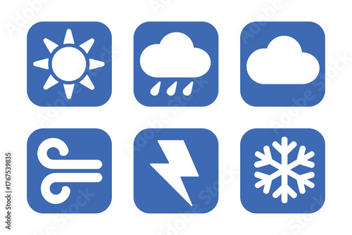 Rounded Square Blue Weather Forecast Vector Icons Collection Sun Rain Cloud Wind Lightning