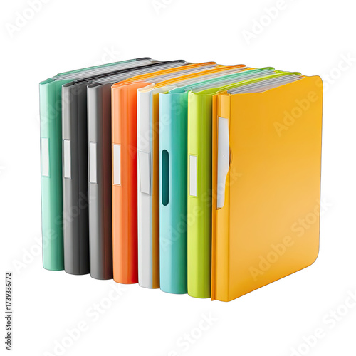 Row of colorful document folders, organized and upright