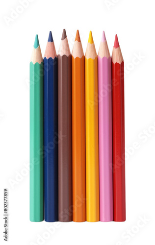 Row of colorful pencils for drawing aligned, isolated on transparent background. Generative AI