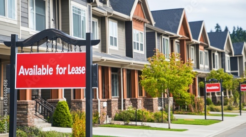 Row of Modern Townhouses with 'Available for Lease' Signs Displays Market Dynamics