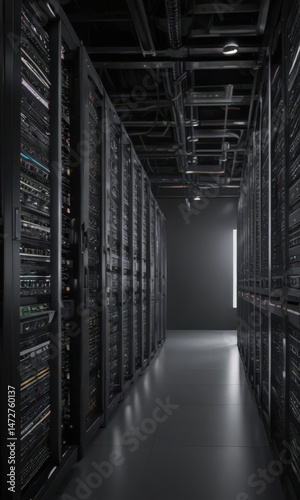 Rows of humming servers in a modern data center , networking, connectivity