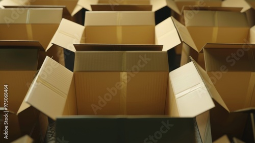 Rows of open cardboard boxes neatly arranged, ready for packing or unpacking, symbolizing a move, organization, or a large shipping operation.