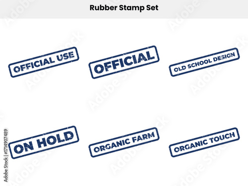 Rubber Stamp Set with Official Use, Organic Farm & Touch in Blue on White