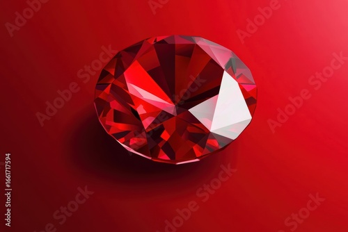 Ruby gemstone depicted on a vibrant red background in a vector illustration format