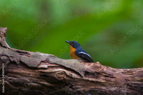 Rufous-chested flycatcher (Ficedula dumetoria) is a species of bird in the family Muscicapidae. Its natural habitats are subtropical or tropical moist montane forests.Bird on tree branch.