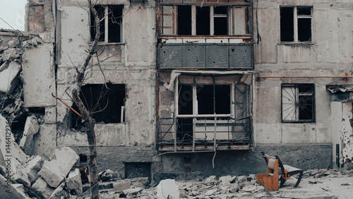 ruined street and destroyed houses the city war in Ukrain