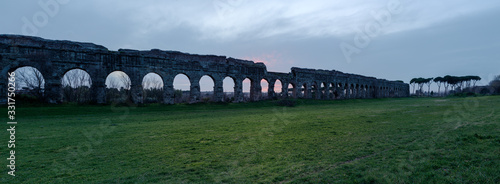 Ruins of Roman aqueduct Aqua Claudia in Parco degli Acquedotti park, Rome, Italy