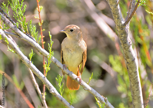 ruiseñor posado en una rama (Luscinia megarhynchos) Marbella Andalucía España