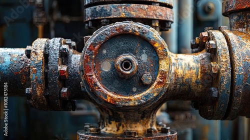 Rusted Industrial Pipe with Flanges and Bolts