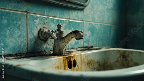 Rustic Bathroom Sink and Faucet: A Grunge Photography