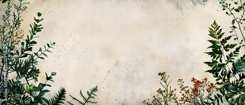 Rustic Botanical Border Design with Blank Space for Business Concept
